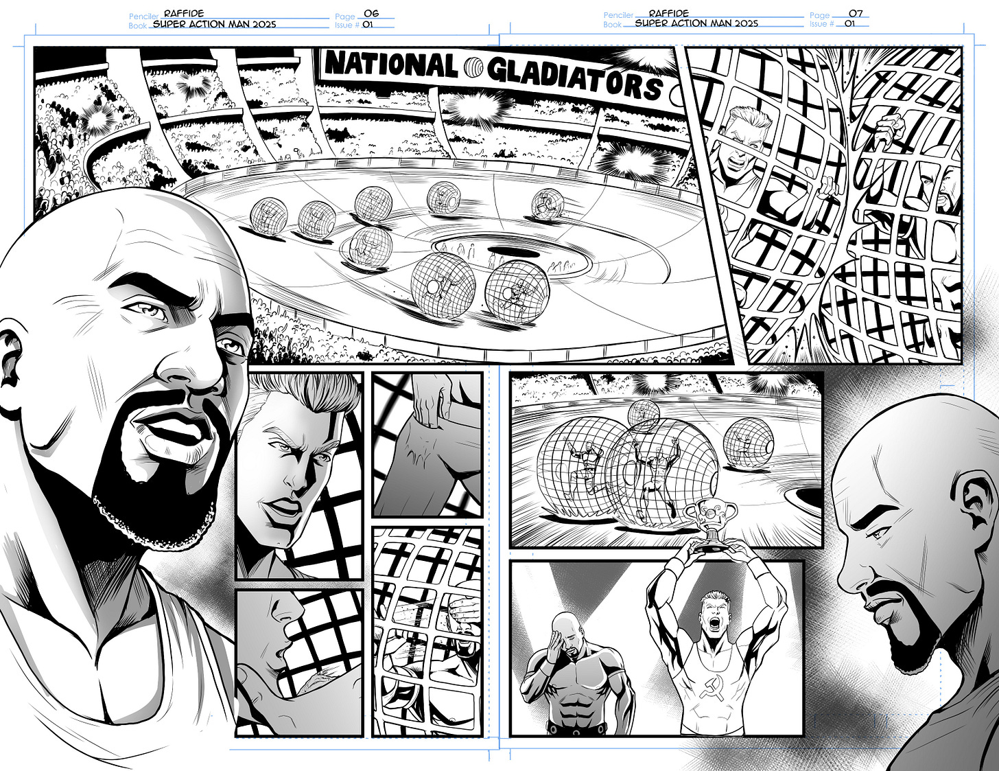 And as a thank you for reading this far, enjoy this 2-pager from the NEXT book, Super Action Man, aka the most patriotic, fun, and ridiculous book you’ll read next year! This is the tragic origin story of our character Razorblade, in a scene that I made up on the radio when I was 18 years old. And now it’s part of this fun, action-packed, team comic book! Look for it early next year with art from the awesome Guilherme Raffide!